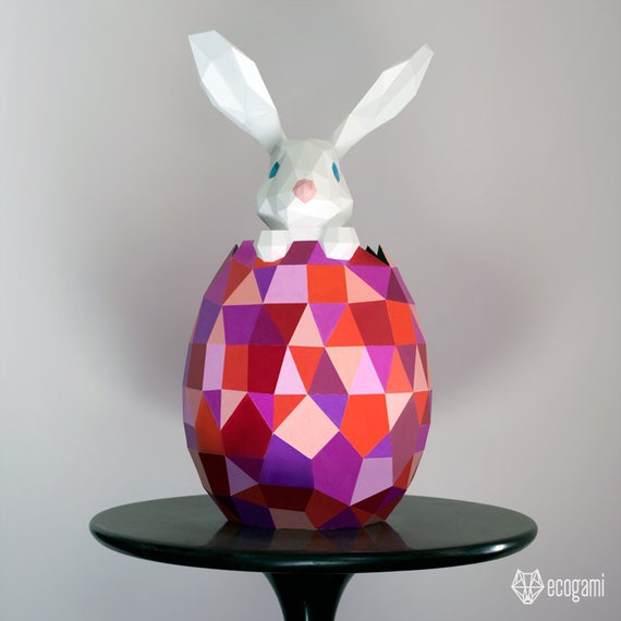 DIY Easter bunny papercraft sculpture, perfect for your Easter decor by EcogamiShop